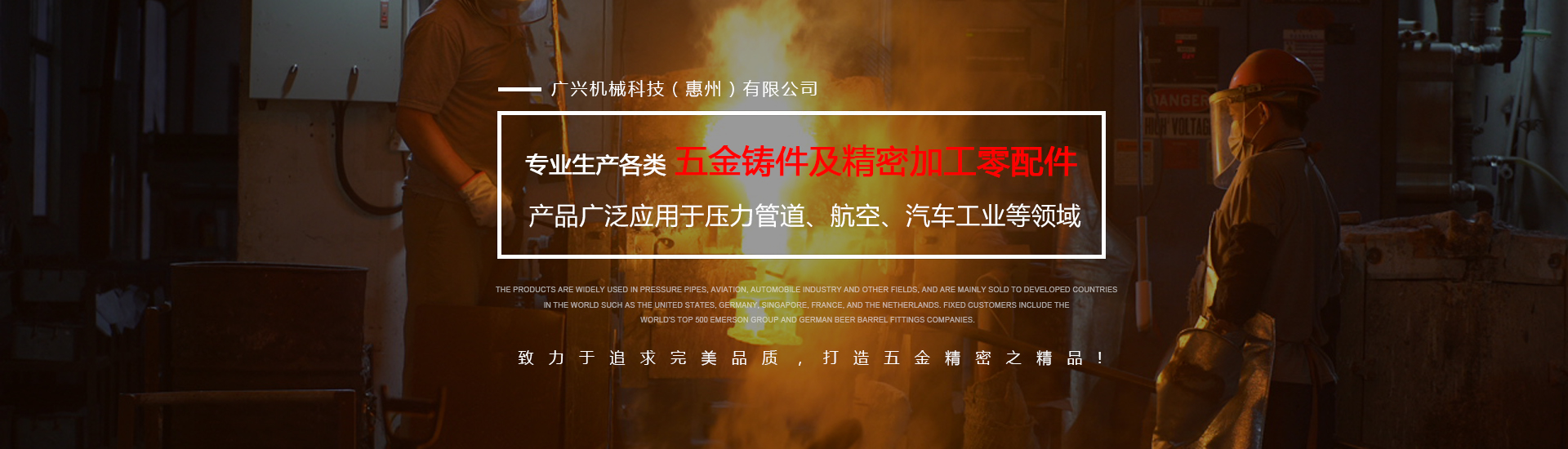 公司專業生產各類五金鑄件及精密加工零配件,可熔煉材質為全系列不銹鋼及碳鋼,主要生產材質有304316、316L、17-4、430、409等,年生產各種不銹鋼鑄件1000余噸。產品廣泛應用于壓力管道、航空、汽車工業等領域,主要銷往美國、德國、新加坡、法國、荷蘭等世界發達國家,固定客戶有世界500強艾默生集團及德國啤酒桶配件公司。